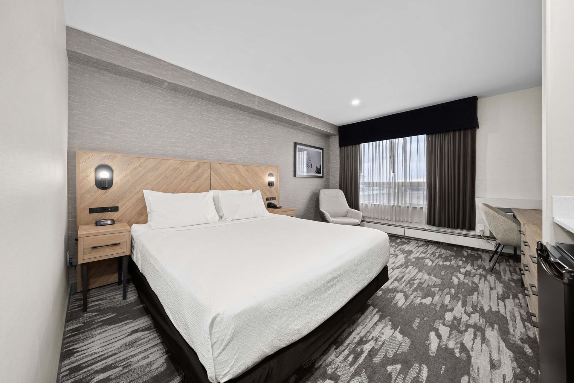 Newly Renovated, Accessible Room, 1 King Bed, Fridge, Microwave, Tub with Shower, Free WiFi, Free Airport Shuttle, 320sf, 30sm, Floors 1-4.
